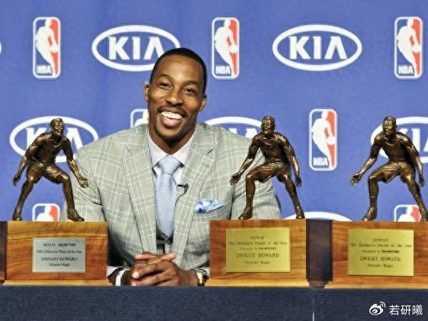 NBA从成立到现在,一共75年,而在这75年里面,除了霍华德没有一个球员能够连续三届获得DPOY这个奖项。这就足可以证明霍华德当年在禁区里面的防守统治力,甚至可以这么说,霍华德当年除了防守姚明很吃力之外,其他的内线在他面前,基本就是给他刷数据一般的存在。