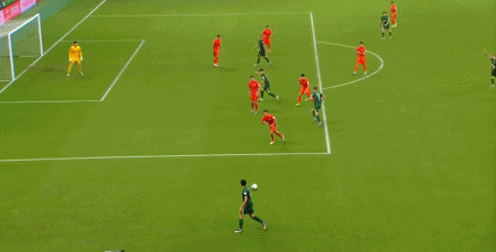 第47分钟,张玉宁杀入禁区,小角度射门被挡出