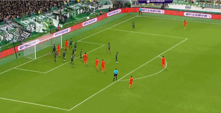 第52分钟,运气不佳,林良铭射门击中立柱