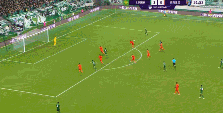 第45+4分钟,塞鸟助攻古加禁区内破门,国安3-0领先云南!