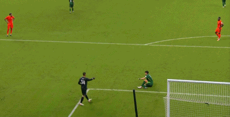 第45+1分钟,林良铭倒在禁区,裁判没有判罚